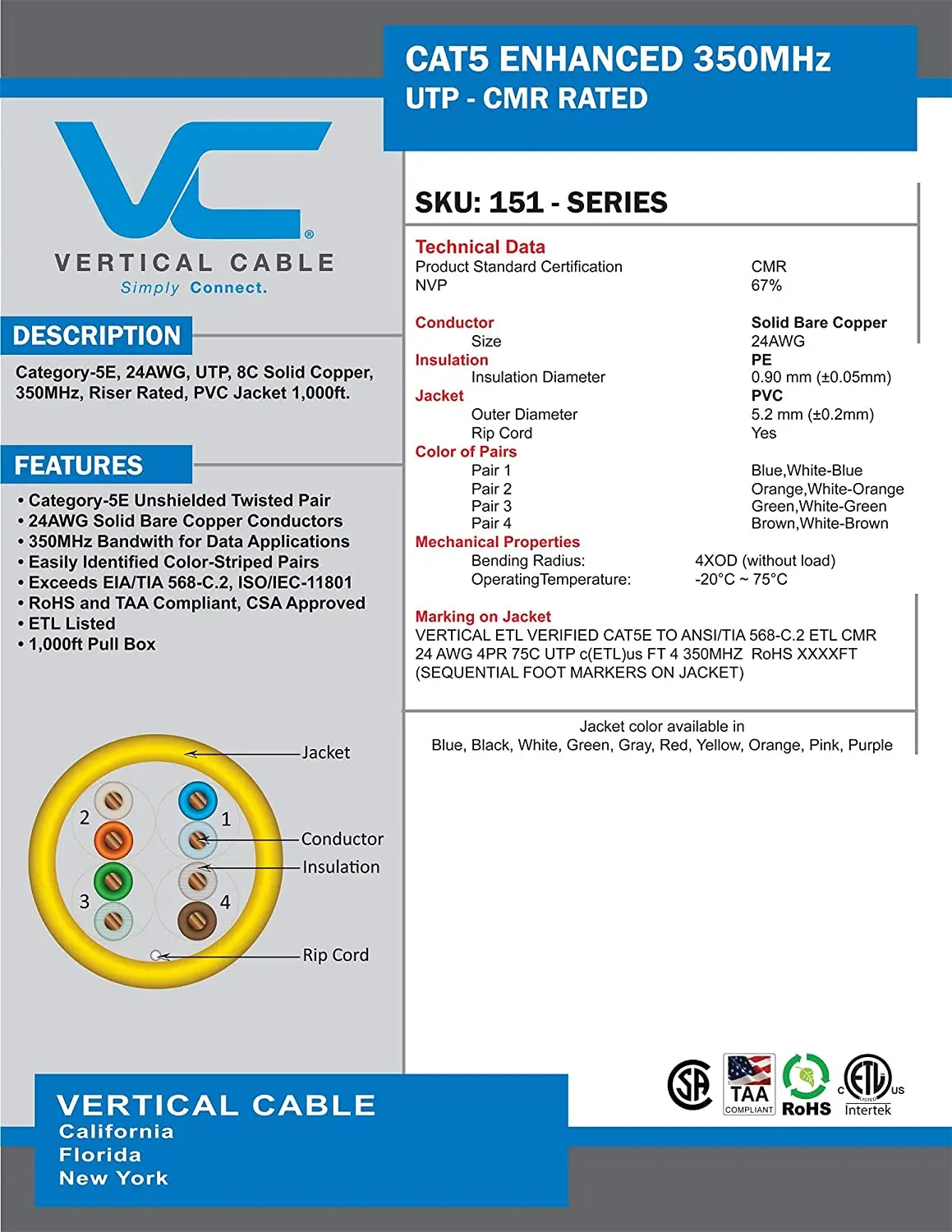 SpecificationVertical Cable-151-105/OR-Spec Sheet.pdf